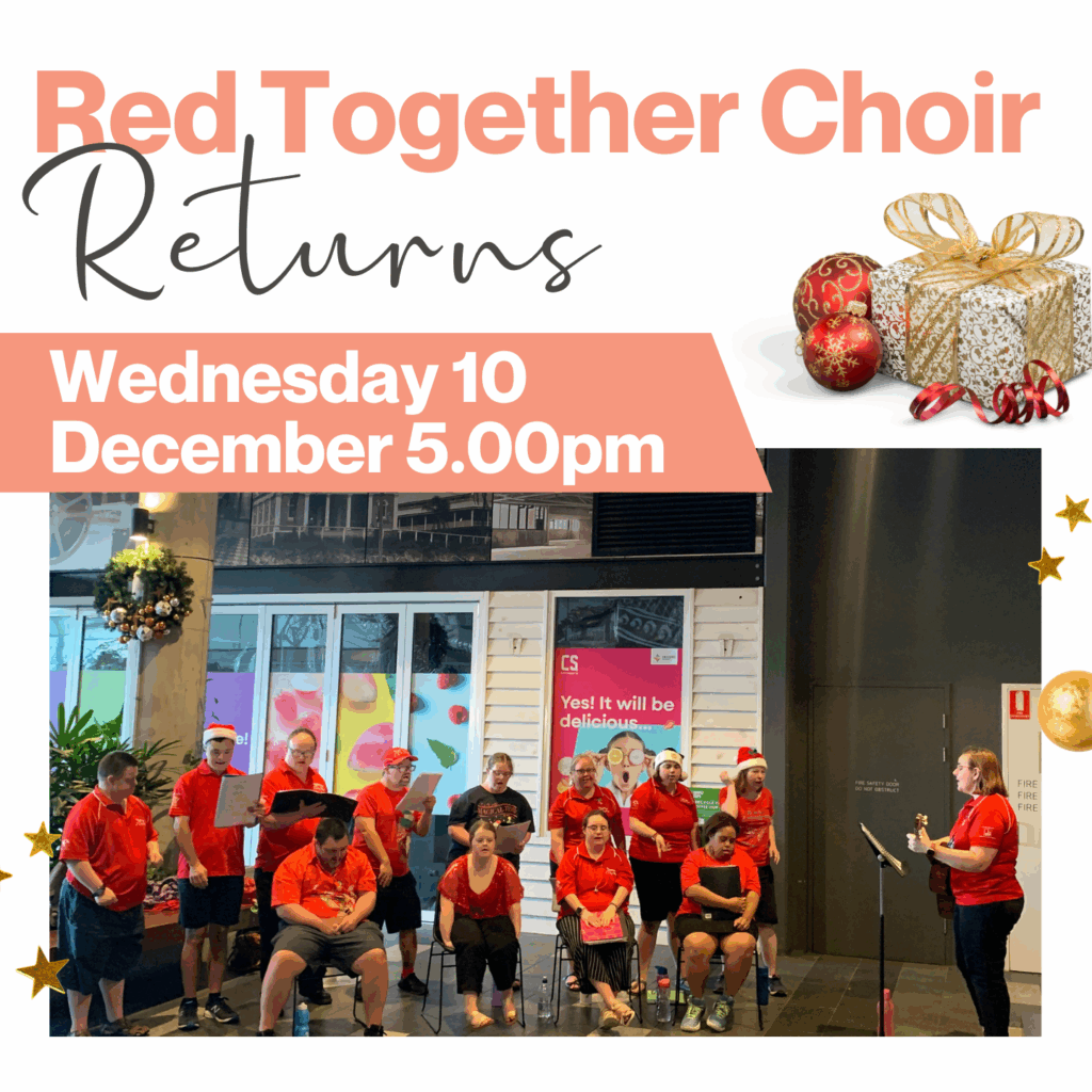 The wonderful Red Together Choir from Down Syndrome Queensland is returning to sing loudly and spread festive cheer on Wednesday 10 December at 5.00pm.